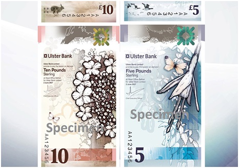 英国北爱尔兰银行Ulster Bank日前透露将于明年年初发行英国第一版竖版钞票。首先面世的是面值5英镑和10英镑的钞票,新款钞票的材质将使用塑料来替代之前的横向纸币。